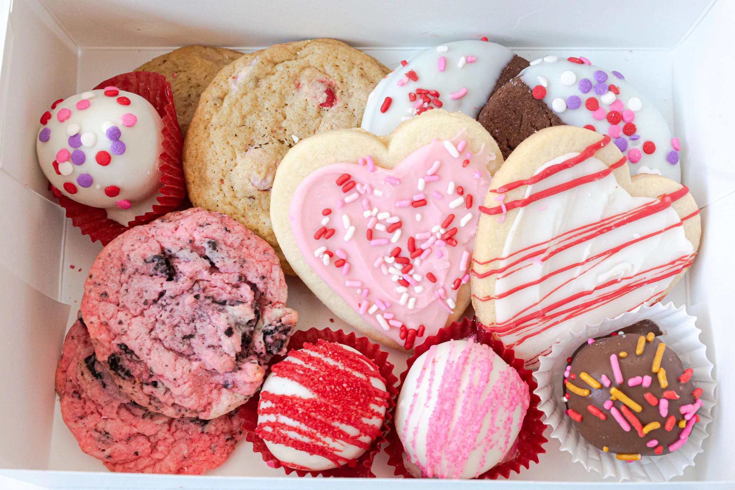 and 4 assorted Valentines cookiesSmall Cake Ball Box (4ct)